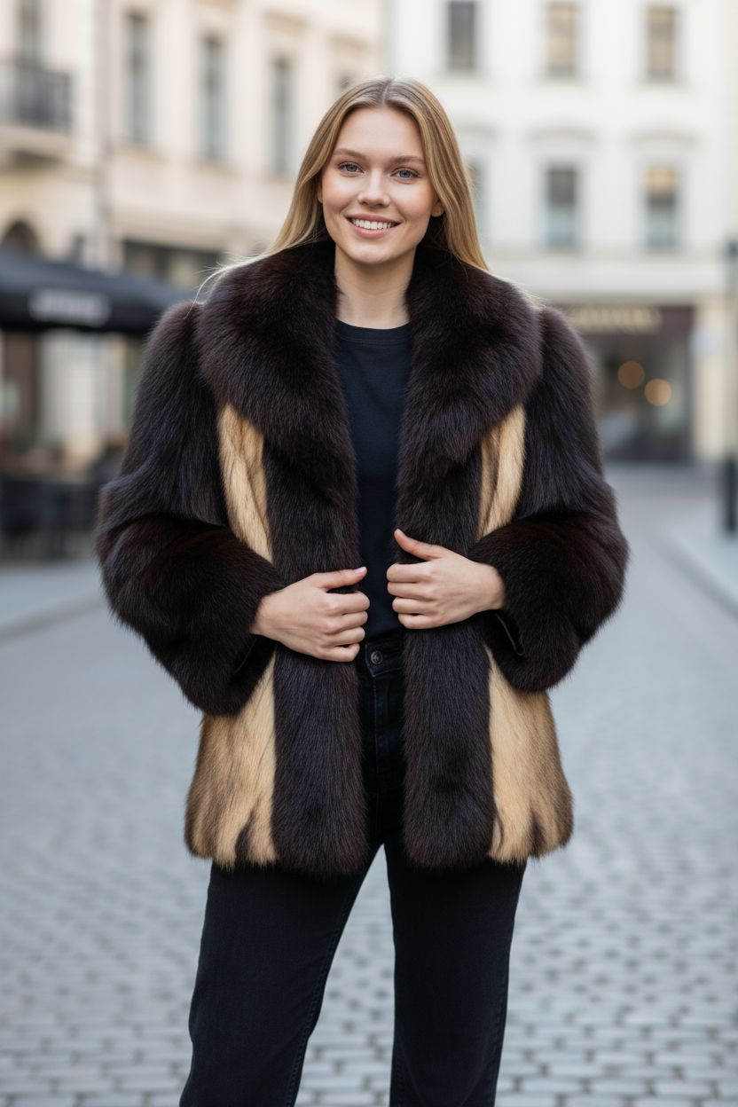 This luxurious natural fitch and fox coat is a true statement of elegance and warmth. Crafted from soft, silky fitch fur with rich natural tones and accented by full, lush fox trim, it blends sophistication with timeless style. The coat’s flattering silhouette and plush texture make it perfect for both formal occasions and everyday glamour. Unique fur to see for the woman who appreciates genuine quality and classic beauty.